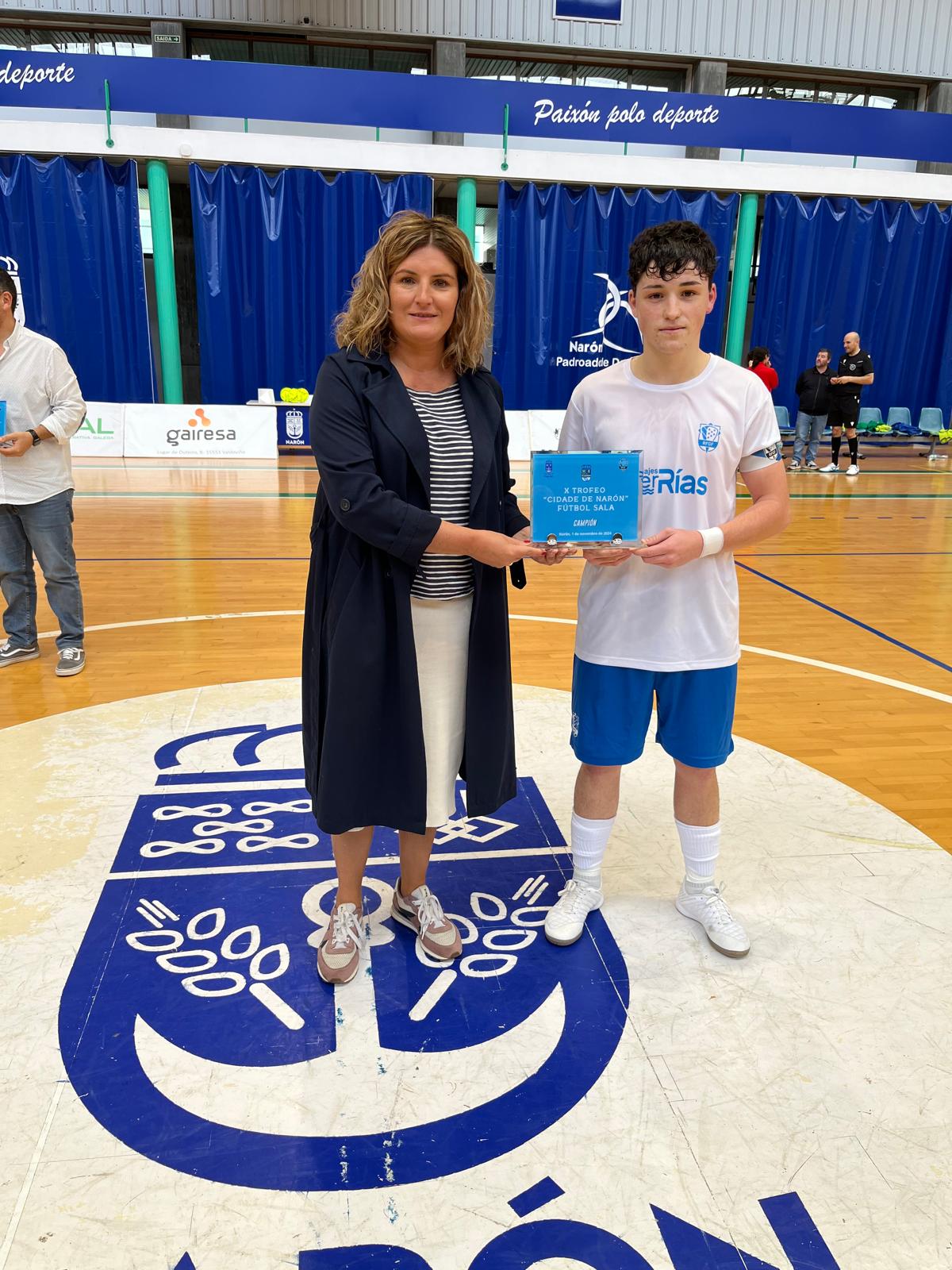 • A alcaldesa de Narón, Marián Ferreiro; e o concelleiro de Mobilidade, Urbanismo, Obras e Infraestruturas Públicas, Persoal e RRHH, Pablo Mouriz, foron os encargados de facer entrega dos trofeos ao campión e o sucampión